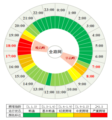 10月7日至8日(假期最后两天)17:00-19:00,返程车流主要集中在城区外围高速路网,城区交通运行基本正常,预计不会出现长时间、大面积拥堵。