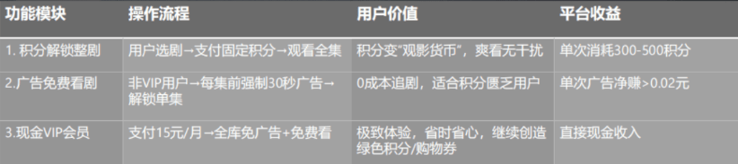 短剧行业的崛起提供破局契机,其高粘性、强付费意愿的特点,成为积分消耗优质载体。