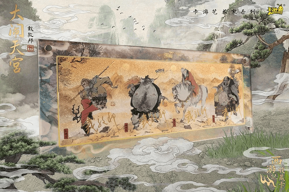 卡游对于传统文化的发掘由点到面地展开,品牌还开启了“国创艺术家系列”工程,与我国著名国画家戴敦邦先生达成深度合作意向,获得戴敦邦先生《红楼梦-大观奇缘》《水浒传-逼上梁山》《西游记-大闹天宫》《三国演义-群雄逐鹿》四大名著IP插画独家授权,进行卡牌等多元衍生品开发。