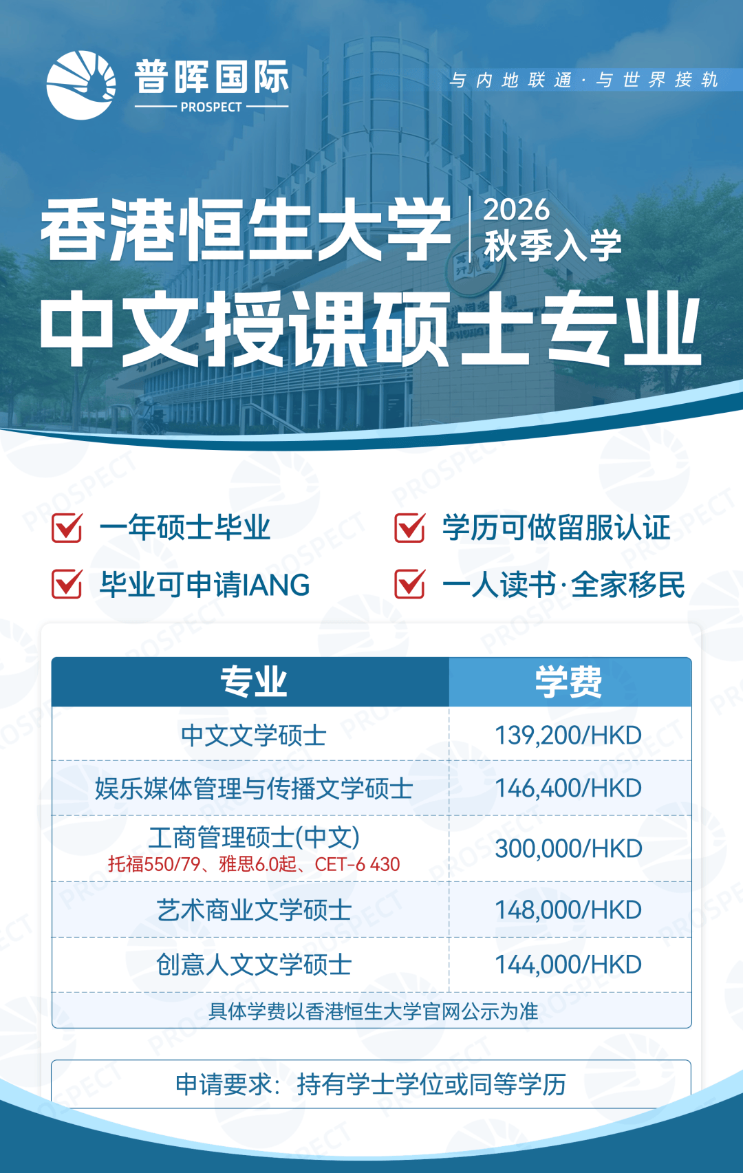 毕业后即可申请两年IANG签证,累计居住满7年即可申请转为香港永久居民。该项目无需高昂投资,是将个人深造、家庭规划与身份获取相结合的高性价比选择。
