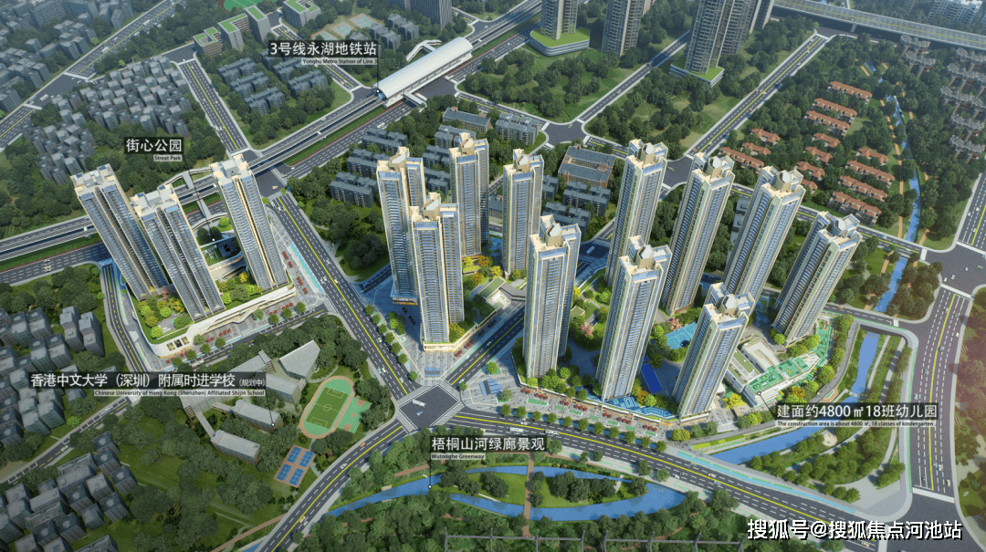 3.教育资源丰富:项目自带 1 所 18 班制幼儿园,方便幼儿入学。家门口就是香港中文大学附属学校,该校为九年制学校(小学+初中),规划有 54 个教学班,是香港中文大学(深圳)基础教育集团与龙岗区政府合作共建的学校,教育资源有一定优势。