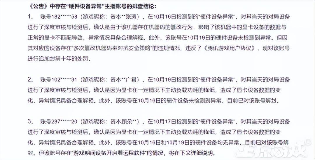 然而随着时间的流逝剧情再度反转,11月3日腾讯官方又更新了公告,表示大部分资本家的账号封禁都是硬件问题导致,把检查异常的锅甩给了显卡,最后只封禁了一个账号,还是因为频繁修改机器码而不是直接检测出外挂。