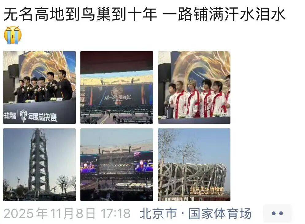 “我一直都很喜欢的那句歌词,从无名高地到鸟巢的十年,一路铺满汗水泪水。当我得知今年年总在鸟巢之后,我第一时间脑子里出现的就是这句话,因为无论是对于KPL联盟,还是对于战队和选手,甚至对于粉丝来说,鸟巢都意义重大。包括我在内的KPL的粉丝,大部分入坑时都很年轻,也没人会想到自己九年后会出现在鸟巢这样的最高级别的体育馆看王者荣耀的比赛呢?谁能想到,自己看的手游电竞赛事,成了打破吉尼斯世界纪录的赛事?”