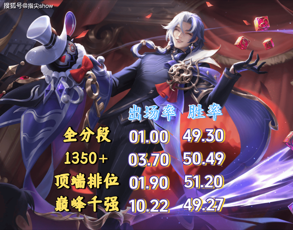 PS:数据取自全区巅峰战力前百,不包括隐藏数据的玩家,另外,双分路的英雄可能出场率会更高,因为会计算到一起,出场率仅统计小国标以上的英雄。
